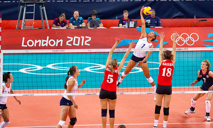 The job of a volleyball digger is to prevent the ball from hitting the floor after being spiked by the opposing team. To dig, the volleyball players must anticipate the spike and be prepared to quickly dive in any direction.